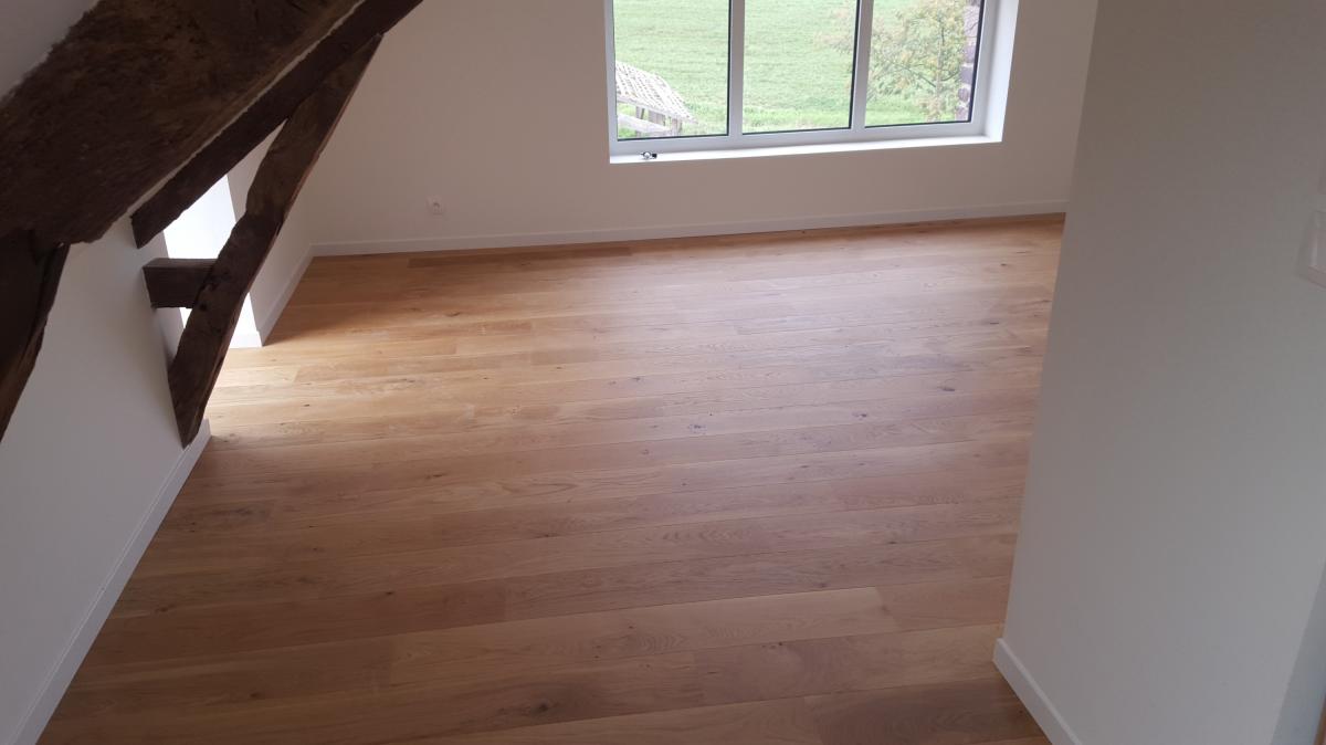 Le massif est composé d’un seul bois et peut être poncé plusieurs fois. Le contrecollé est plus stable et compatible avec le chauffage au sol.